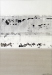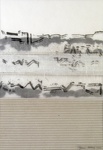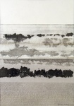 Dit is een serie werken met als inspiratiebron de duinen. Het werk is ingelijst met passe-partout in een aluminium lijst 60 x 80 cm. In deze collages heb ik bewerkte transparante textiele materialen gecombineerd met golfkarton en aluminium.