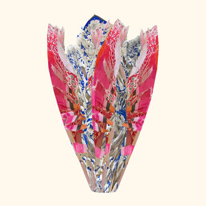 De bijzondere textuur van het blauw witte papier deed mij aan aardewerk denken. Dit is de link naar Delftsblauw